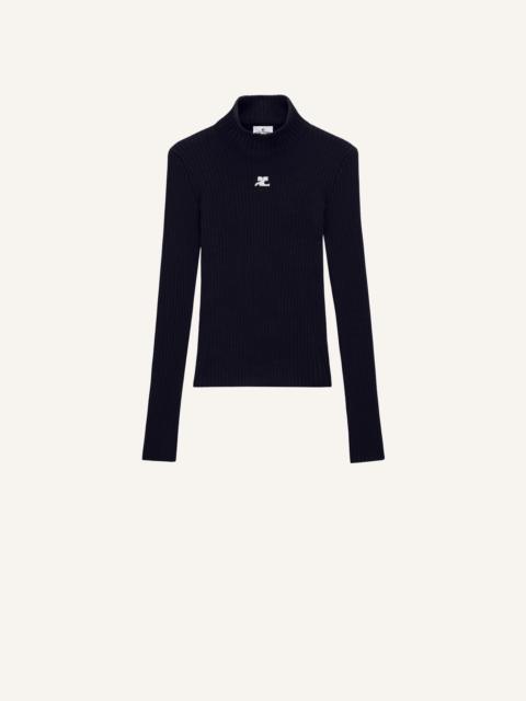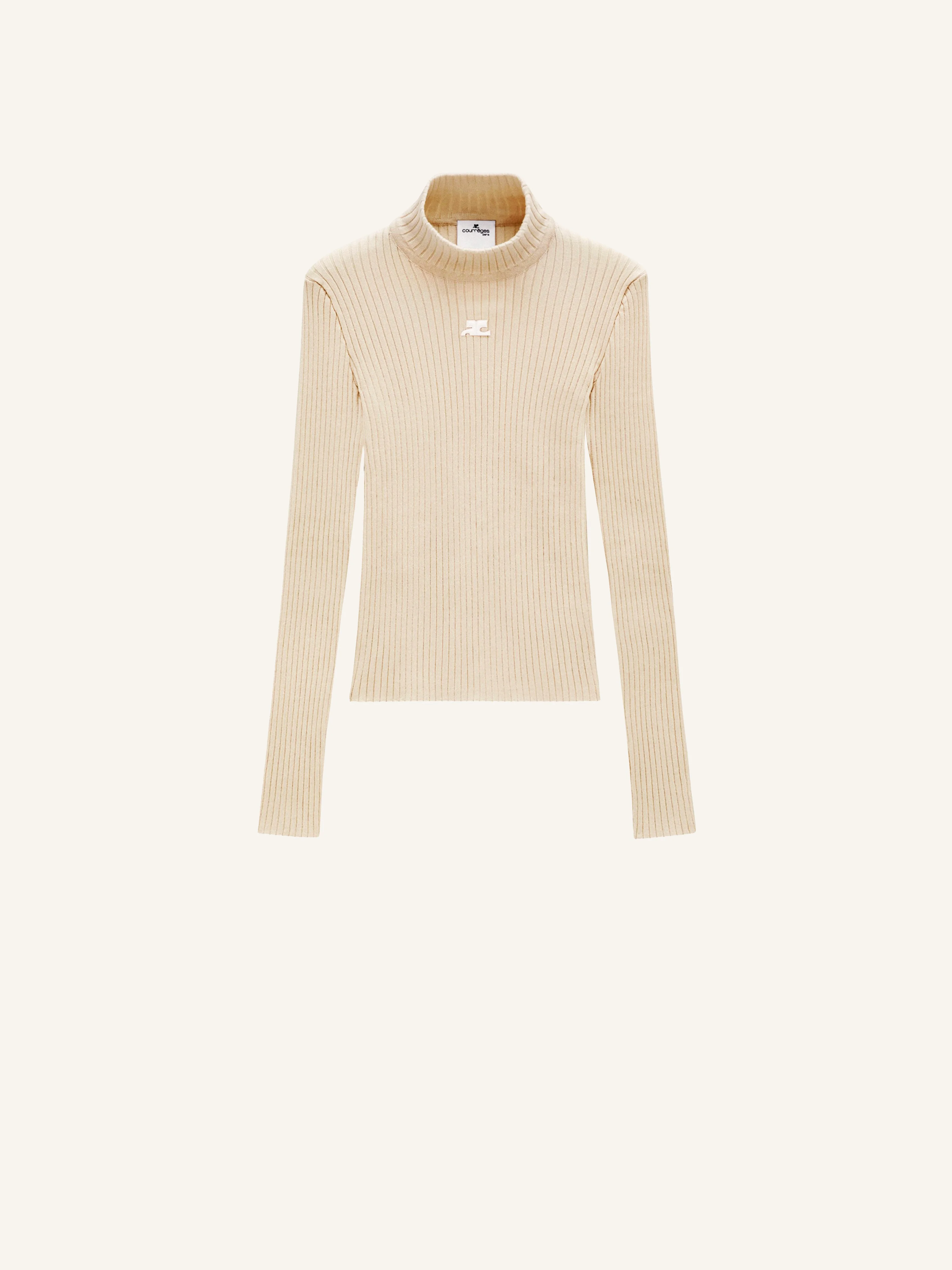The ribbed knit is a timeless Courrèges piece. 100% cotton made, it is declined here in a long sleeves version with a high collar and enhanced on the front with our embroidered white AC logo. DETAILS Composition: PERMPU022FI0001 Country of manufacture: Bulgarie Colour: Sable Item code: PERMPU022FI00011007