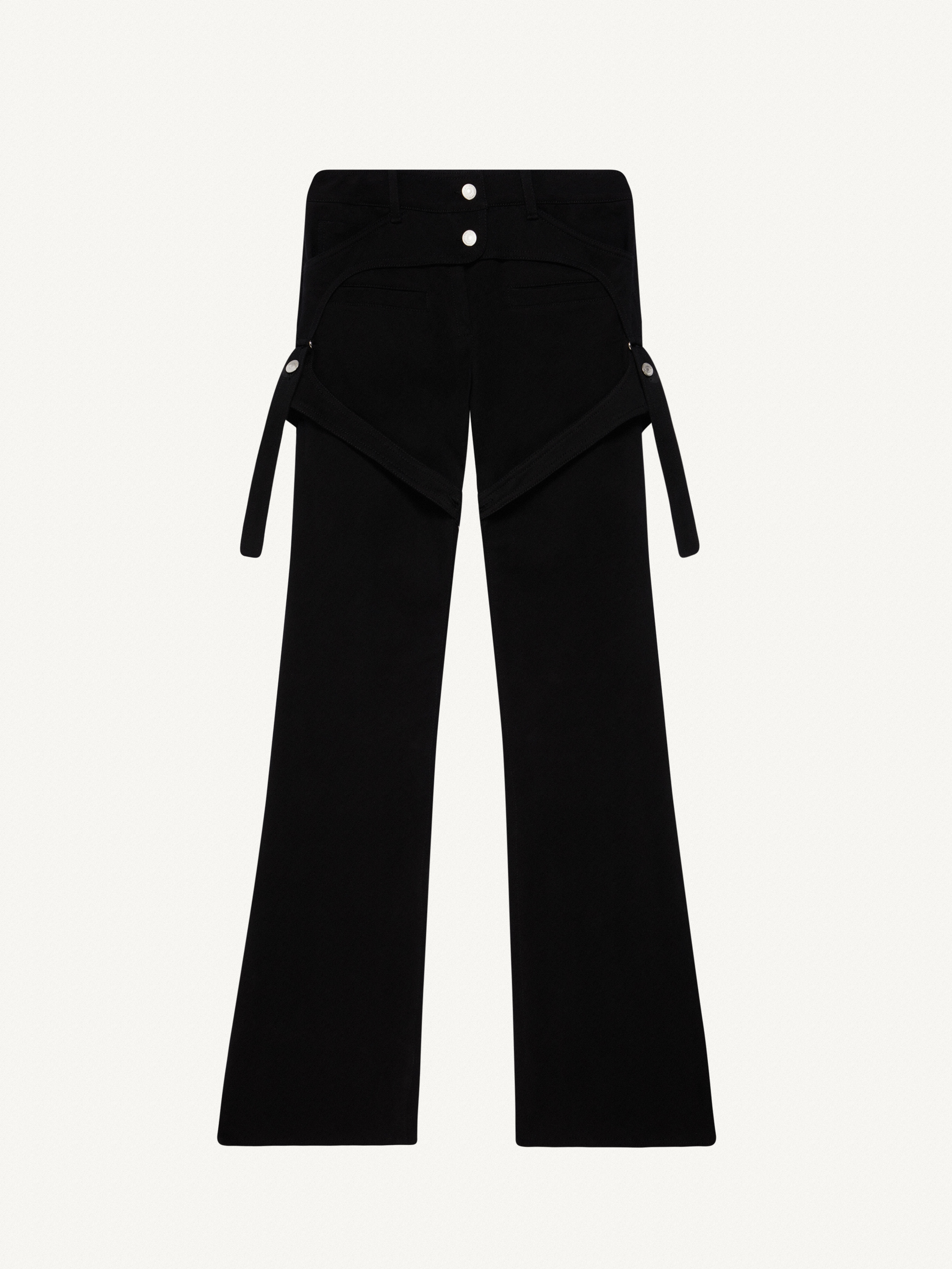 Racer cotton pants with heritage pockets and adjustable chaps straps. DETAILS Details: 97% cotton 3% elasthane lining: 100% cotton Country of manufacture: Lithuania Color: Noir Item code: 223CPA106CO00689999