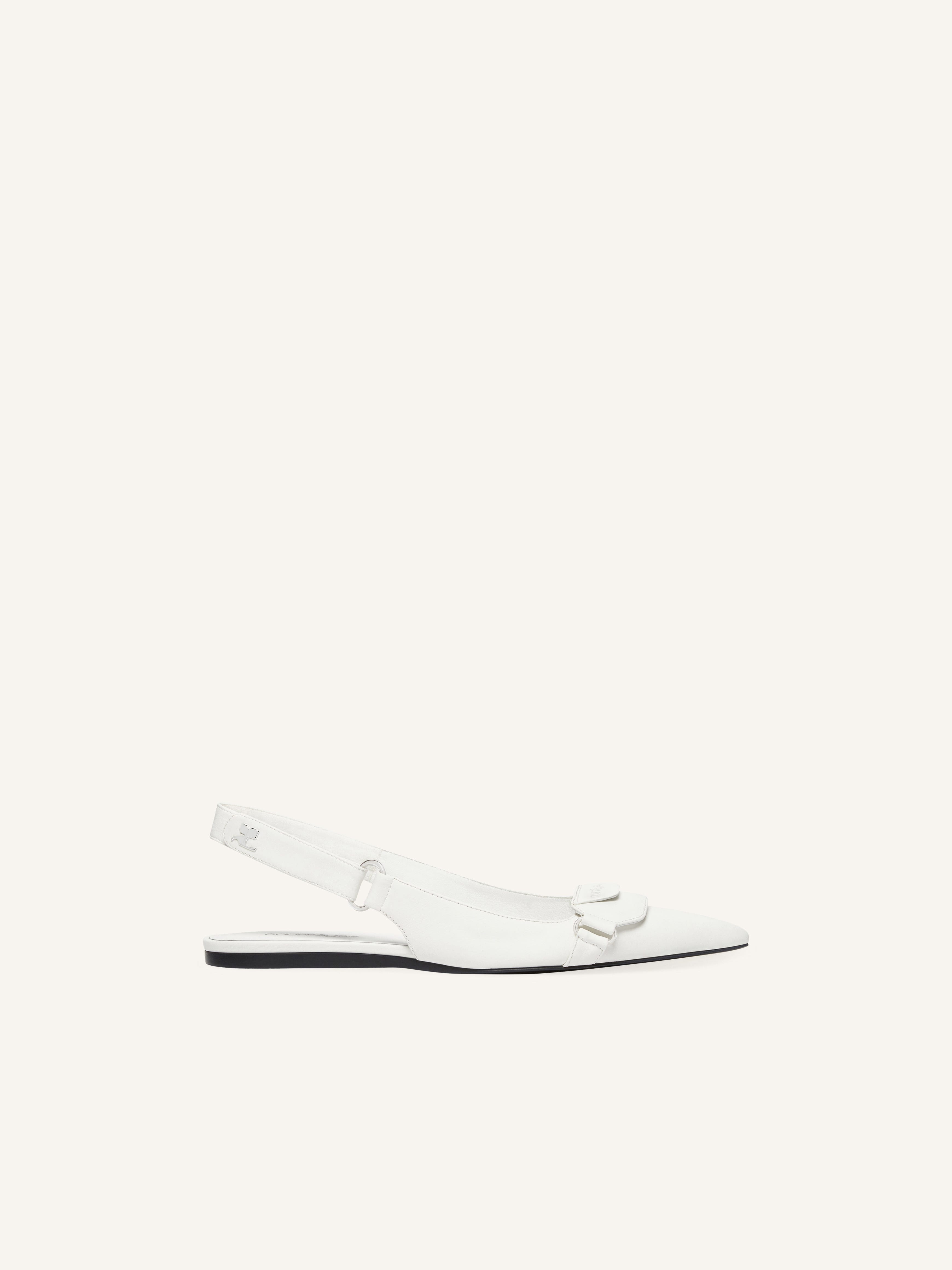 Racer slingback ballerinas in lambskin. "Courreges" logo embossed on front and adjustable back strap with metallic AC logo. DETAILS Composition: 100% sheep leather Country of Manufacture: IT SKU: 125SCS111AG00300001 Color: Heritage White