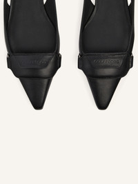 Racer slingback ballerinas in lambskin. "Courreges" logo embossed on front and adjustable back strap with metallic AC logo. DETAILS Composition: 100% sheep leather Country of Manufacture: IT SKU: 125SCS111AG00309999 Color: Black