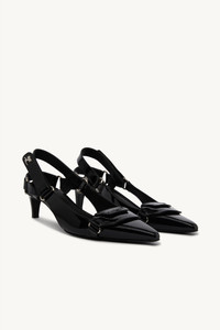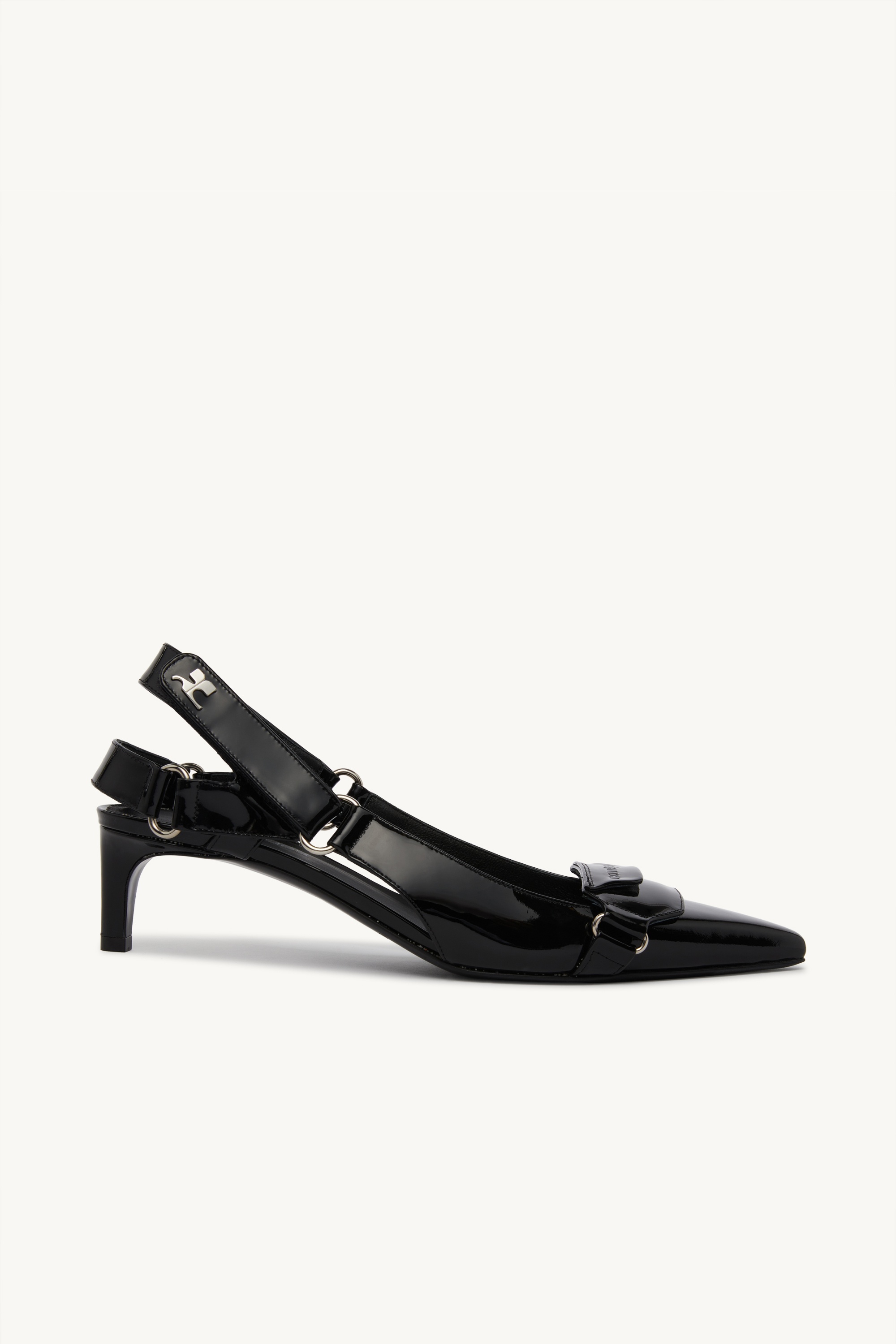 Black patent leather slingback pumps with Courrèges pocket at the front with silver trimmings. DETAILS Composition: 100% CUIR Details: Dimensions: heel height = 5 cm Country of manufacture: Italy Color: Noir Item code: 223SPP002CR00159999
