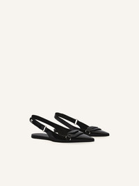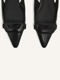 Racer vinyl slingback ballerinas. "Courreges" logo embossed on front and adjustable back strap with metallic AC logo. DETAILS Composition: 88% cotton, 10% polyurethane, 2% elastane Country of Manufacture: IT SKU: 125SCS111VY00039999 Color: Black