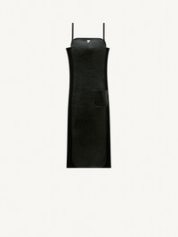 Long bi-material dress, vinyl and ribbed knit. Vinyl patch pockets on the front. Thin straps with eyelets and buckles. Invisible zip on the middle back. Metal AC logo on the middle front. DETAILS Composition: 88% COTON 10% POLYURETHANE 2% ELASTHANE 70% VISCOSE FSC 30% POLYESTER 100% CUPRO Country of manufacture: Slovaquie Colour: Noir Item code: 422CRO141VY00039999