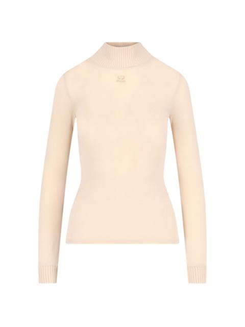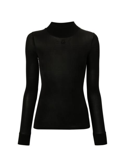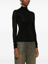 logo-patch roll-neck top Highlights - Black - Stretch-design - Logo patch to the front - Ribbed roll neck - Long sleeves with ribbed cuffs - Straight hem Made in France Composition Viscose 95%, Elastane 5% SIZE & FIT Model measurements Height 5 ft 10 in(1.78 m) Bust/Chest 31.49 in(80 cm) Hips 37 in(94 cm) Waist 23.62 in(60 cm) FittingInformation Designed for a close fit throughout Made from a midweight stretch fabric, this piece offers elasticity and flexibility when worn This piece fits true to size – take your usual size
