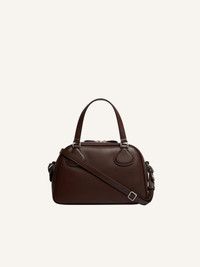 Reedition leather Bowling bag with AC logo inlaid on front. Metal zipper closure. Short handles with removable and adjustable shoulder strap. Inside zipped pocket. Length: 25 cm Height: 15.5 cm Width: 12 cm DETAILS Composition : 100% VACHETTE 100% COTON 55% POLYAMIDE/NYLON 25% POLYURETHANE 20% ELASTHANE Color : Chocolate Item code : PERGSA062CR00451983