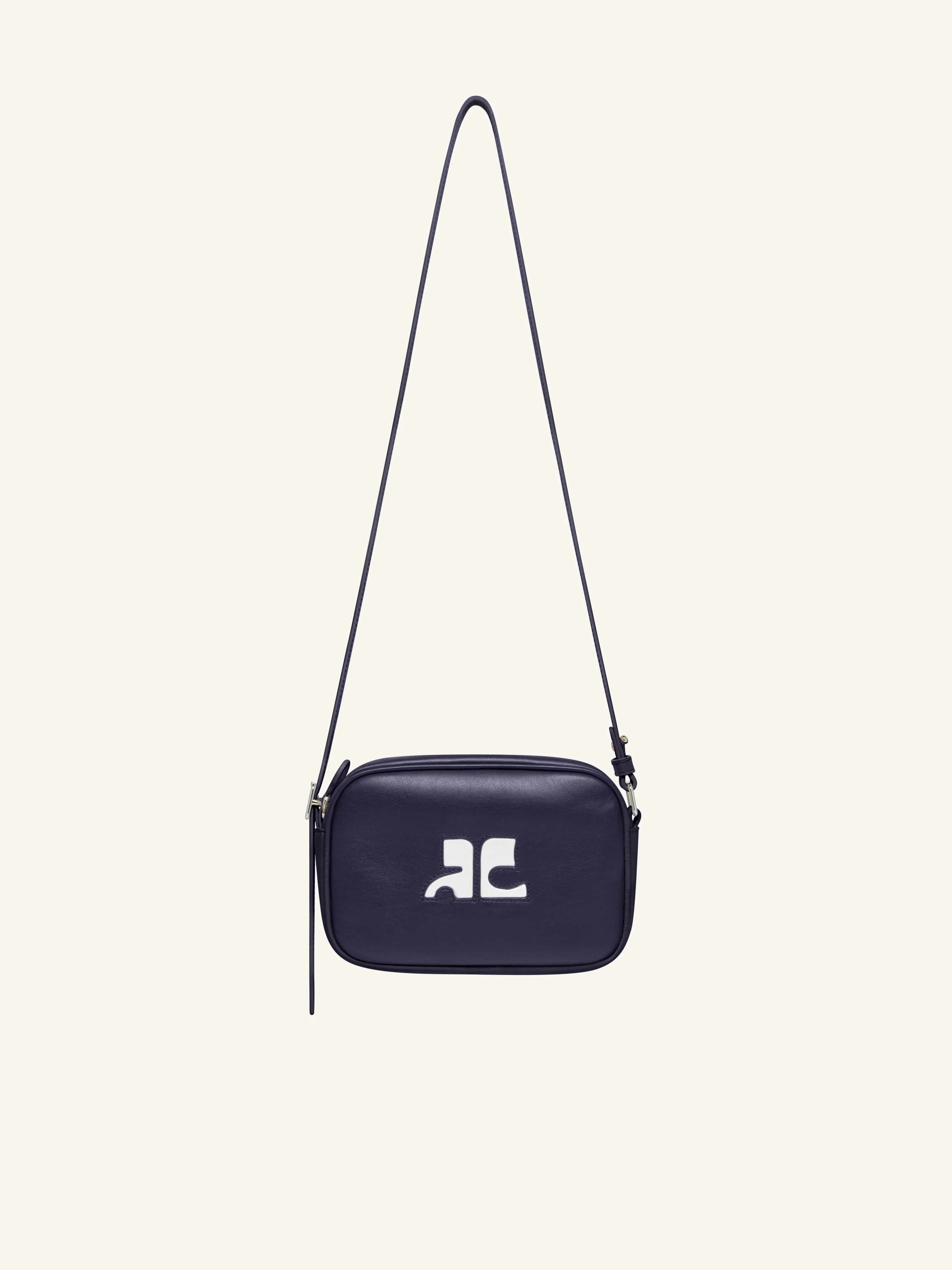 Iconic smooth leather Camera bag with interior pocket and adjustable shoulder strap. White AC logo on front. Length: 17.5 cm Height: 12 cm DETAILS Composition: 100% calf leather Country of Manufacture: IT SKU: PERGSA061CR00657075 Color: Navy