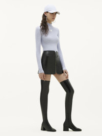 The ribbed knit is a timeless Courrèges piece. 100% cotton made, it is declined here in a long sleeves version with a high collar and enhanced on the front with our embroidered white AC logo. DETAILS Main fabrics: 70% Viscose Fsc 30% Polyester Colour: Lavande Foncé Item code: 322MPU022FI00016007