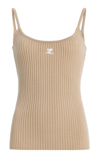 After 12 years alongside Nicolas Ghesquiere and a brief stint at Dior with Raf Simons, Courreges artistic director Nicolas Di Felice has brought the renowned French fashion house back to life. A reedition of an iconic Courreges style, this ribbed knit tank features a round neckline, slim straps, and the brand’s signature logo at the chest. Layer it under the label’s vinyl separates. PRODUCT DETAILS - Pre-Fall '25 - Slip on - Composition: 70% viscose 30% polyester - Dry clean - Imported