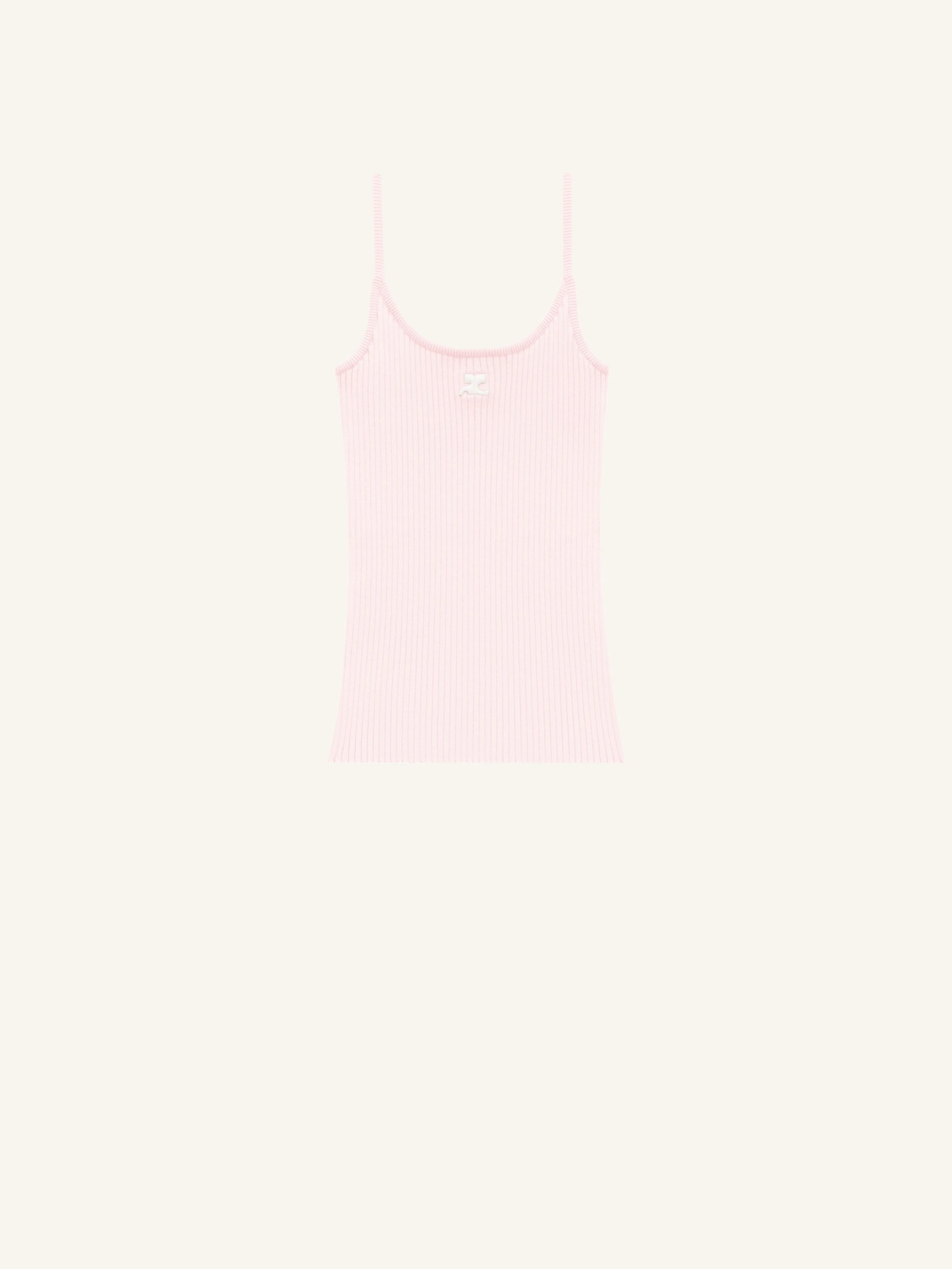 New in the Reeditions collection, Courrèges offers a tank top that uses the emblematic codes of the house's archives. DETAILS Composition : 70% VISCOSE 30% POLYESTER Color : Light pink Item code : PERMDE012FI00015009