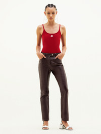 New in the Reeditions collection, Courrèges offers a tank top that uses the emblematic codes of the house's archives. DETAILS Composition : 70% VISCOSE 30% POLYESTER Color : Red Item code : PERMDE012FI00014034