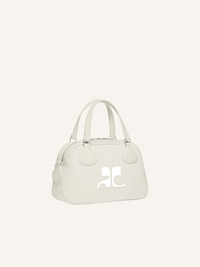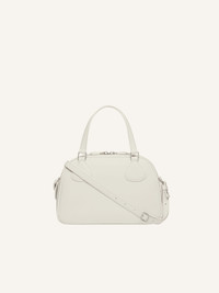 Iconic leather Bowling bag with AC logo inlaid on front. Metal zipper closure. Short handles with removable and adjustable shoulder strap. Inside zipped pocket. Length: 25 cm Height: 15.5 cm Width: 12 cm DETAILS Composition: 100% calf leather Country of Manufacture: IT SKU: PERGSA062CR00659100 Color: Mastic Grey