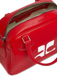 Reedition leather bowling bag Highlights - Red/white - Calf leather - Two-way zip fastening - Two rolled top handles - Detachable shoulder strap - Logo print to the front - Internal zip-fastening pocket Made in Italy Composition Outer: CALFSKIN 100%, Polyamide 55% SIZE & FIT Measurement DEPTH 4.72 in(12 cm) HEIGHT 6.1 in(15.5 cm) WIDTH 9.84 in(25 cm)