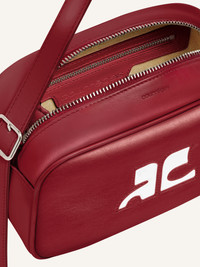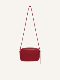 Iconic smooth leather Camera bag with interior pocket and adjustable shoulder strap. White AC logo on front. Length: 17.5 cm Height: 12 cm DETAILS Composition: 100% calf leather Country of Manufacture: IT SKU: PERGSA061CR00654030 Color: Dark Red