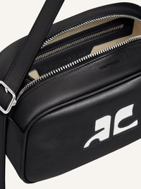 Iconic smooth leather Camera bag with interior pocket and adjustable shoulder strap. White AC logo on front. Length: 17.5 cm Height: 12 cm DETAILS Composition: 100% calf leather Country of Manufacture: IT SKU: PERGSA061CR00659999 Color: Black
