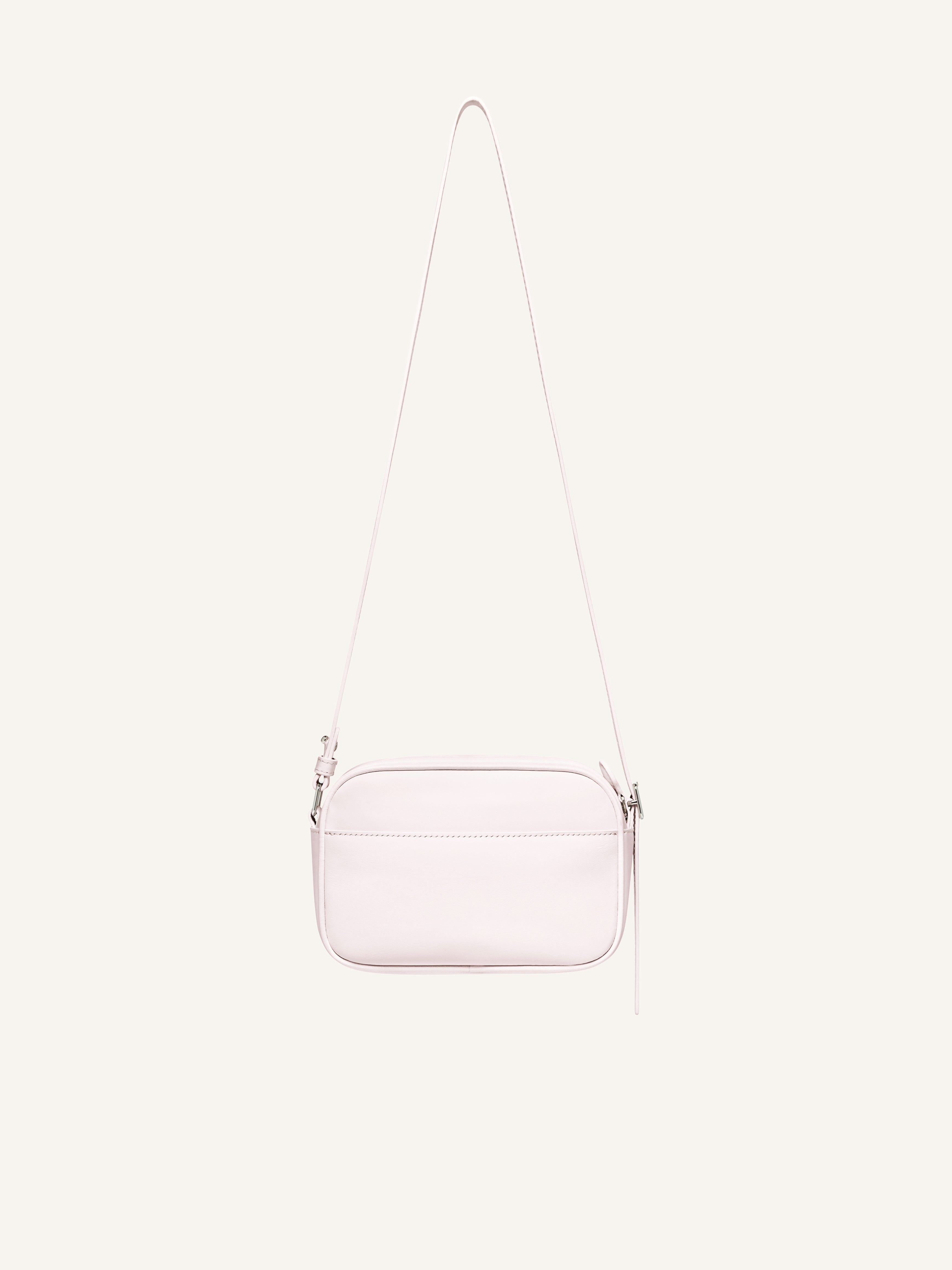 Iconic smooth leather Camera bag with interior pocket and adjustable shoulder strap. White AC logo on front.