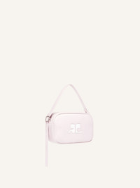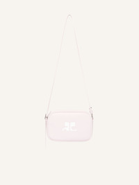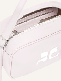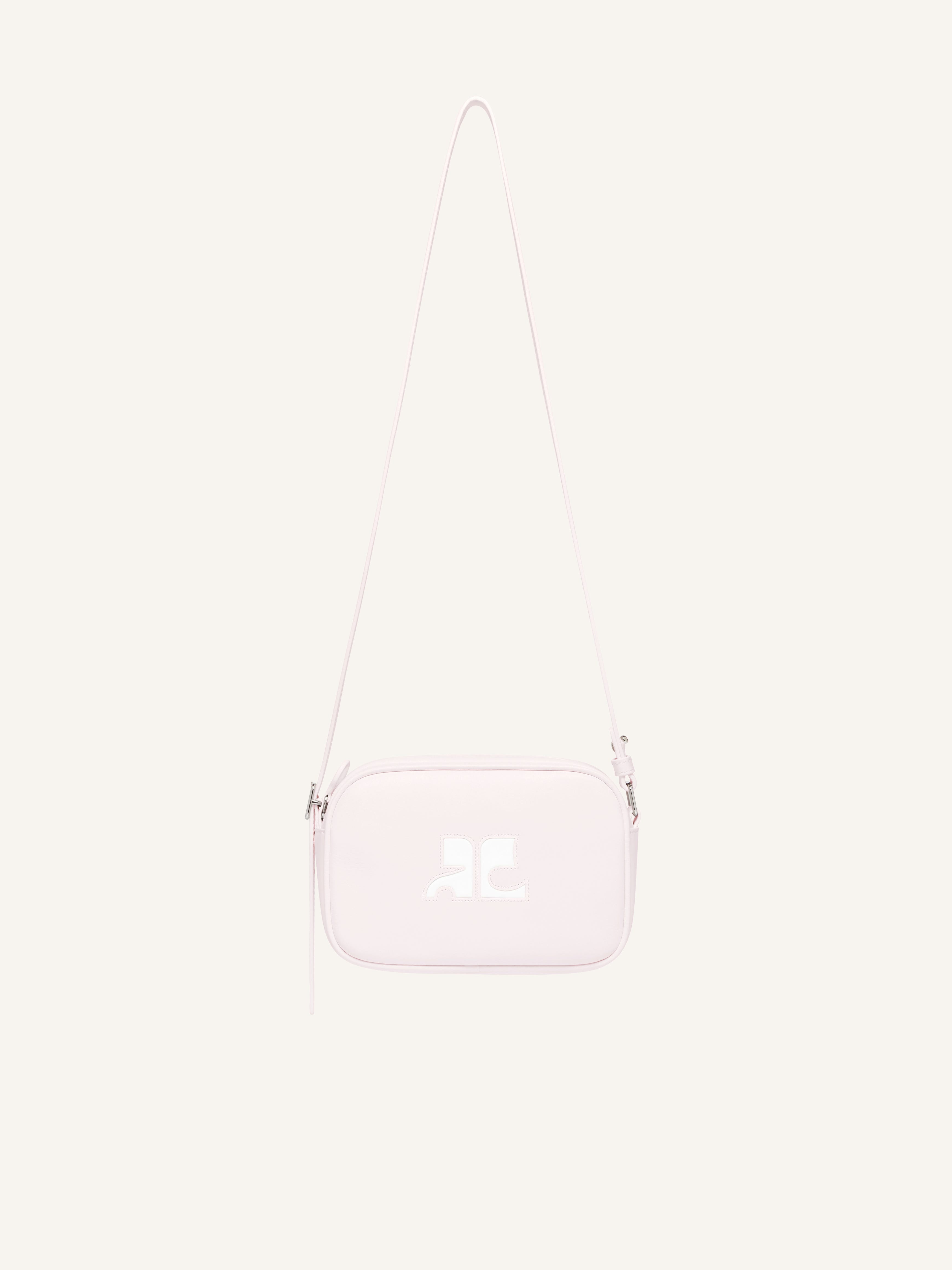 Iconic smooth leather Camera bag with interior pocket and adjustable shoulder strap. White AC logo on front. Length: 17.5 cm Height: 12 cm DETAILS Composition: 100% calf leather Country of Manufacture: IT SKU: PERGSA061CR00655009 Color: Pale Pink