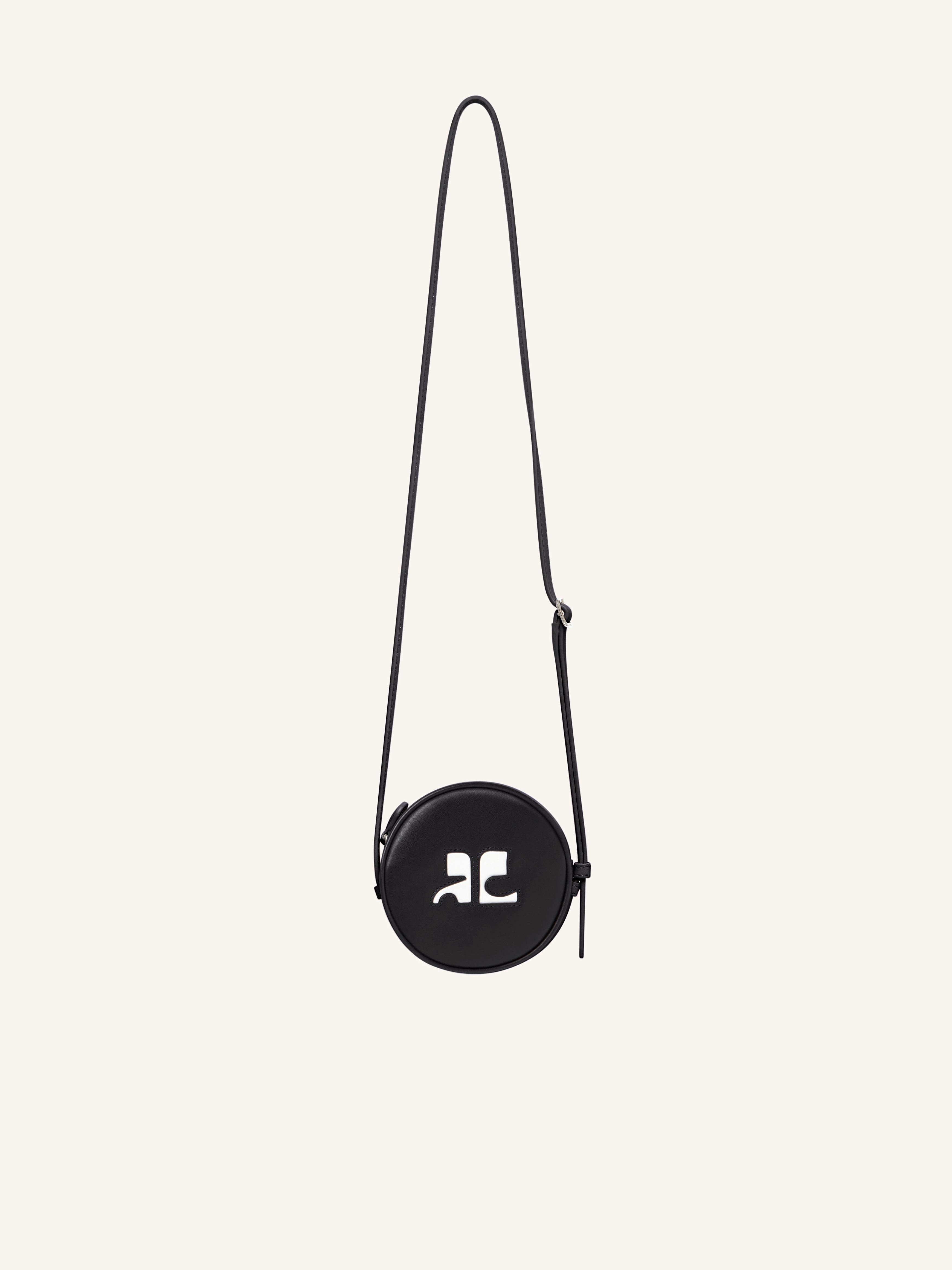 Iconic smooth leather mini Circle bag with removable and adjustable shoulder strap. White AC logo on front. Diameter: 11 cm DETAILS Composition: 100% calf leather Country of Manufacture: IT SKU: PERGSA066CR00659999 Color: Black