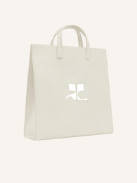 Iconic tote bag in naplack leather with incrusted white AC logo on the front. Short handles and removable crossbody strap. Magnet closure. Inside zipped pocket. Length: 35 cm Height: 38 cm Width: 6 cm DETAILS Composition: 100% leather Country of Manufacture: TR SKU: PERGSA087CR00449100 Color: Mastic Grey