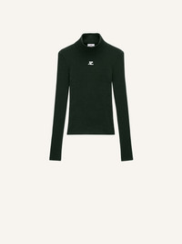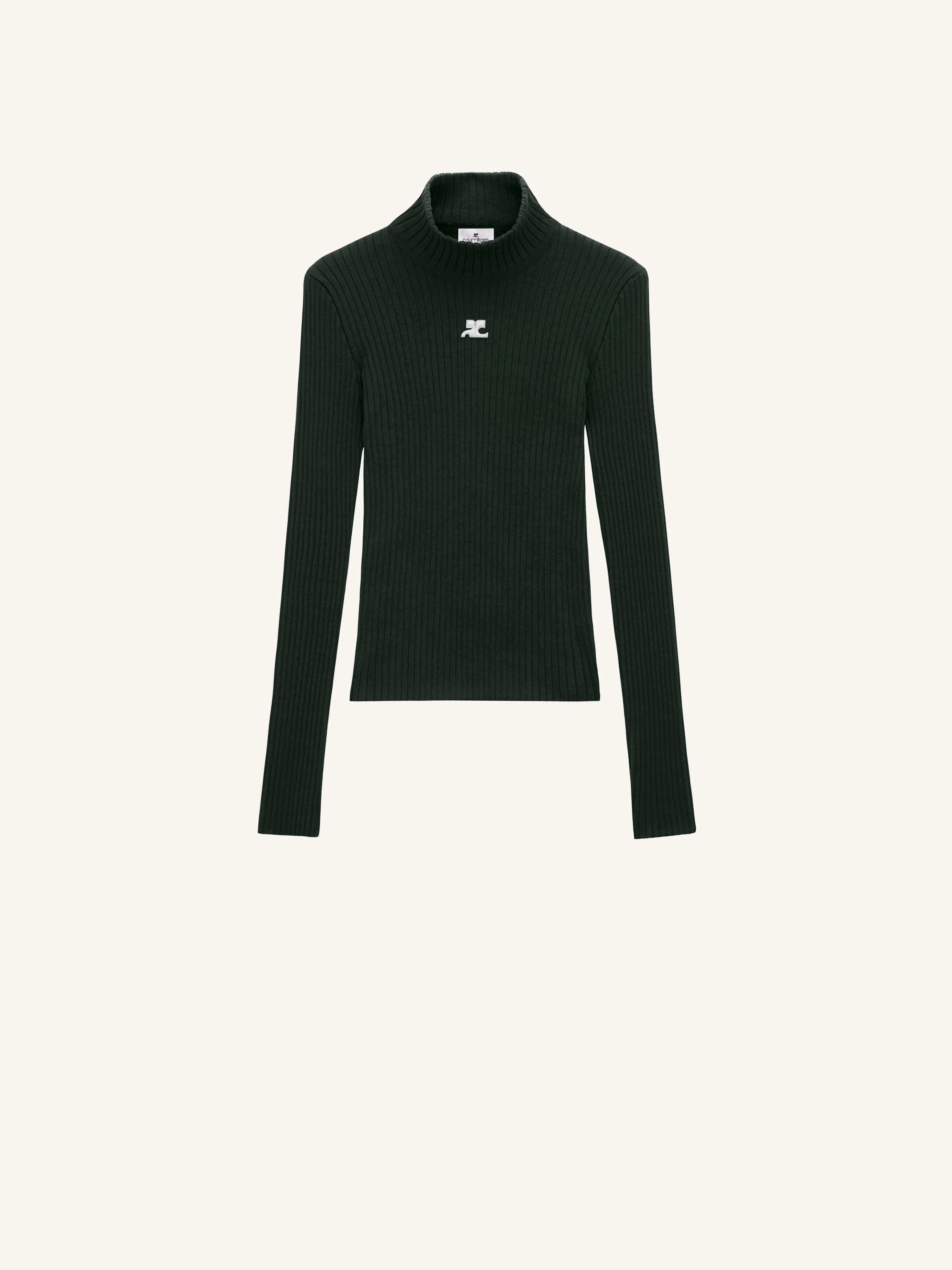 Iconic rib-knit high neck sweater with long sleeves and white AC logo on the front. DETAILS Composition: 70% viscose fsc, 30% polyester Country of Manufacture: BG SKU: PERMPU022FI00018081 Color: Dark green