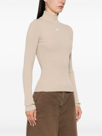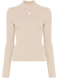 Reedition ribbed sweater Highlights - Light beige - Ribbed knit - Mock neck - Long sleeves - Logo patch to the front - Straight hem Imported Composition Viscose 70%, Polyester 30% SIZE & FIT Model measurements Height 5 ft 10 in(1.78 m) Bust/Chest 33.46 in(85 cm) Hips 36.22 in(92 cm) Waist 23.22 in(59 cm) FittingInformation Designed for a close fit throughout Made from a midweight non-stretch fabric, this piece offers minimal elasticity when worn Measurement BUST 30.7 in(78 cm) LENGTH 22.83 in(58 cm) SLEEVE LENGTH 25.19 in(64 cm) Shoulder Width 14.96 in(38 cm)