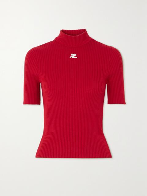 EDITORS'NOTES Courrèges' ribbed-knit top is part of its 'Reedition' collection, which is inspired by some of the brand's most iconic styles from the '60s and '70s. It's designed for a slim fit and appliquéd with the label's futuristic logo at the chest. Tuck yours into high-waisted jeans or a mini skirt. SIZE & FIT - Fits true to size, take your normal size - Designed for a slim fit - Mid-weight knit - Model is 180cm/ 5’11” and is wearing a size Small DETAILS & CARE - Black and white ribbed-knit - Slips on - 70% viscose, 30% polyester - Hand wash