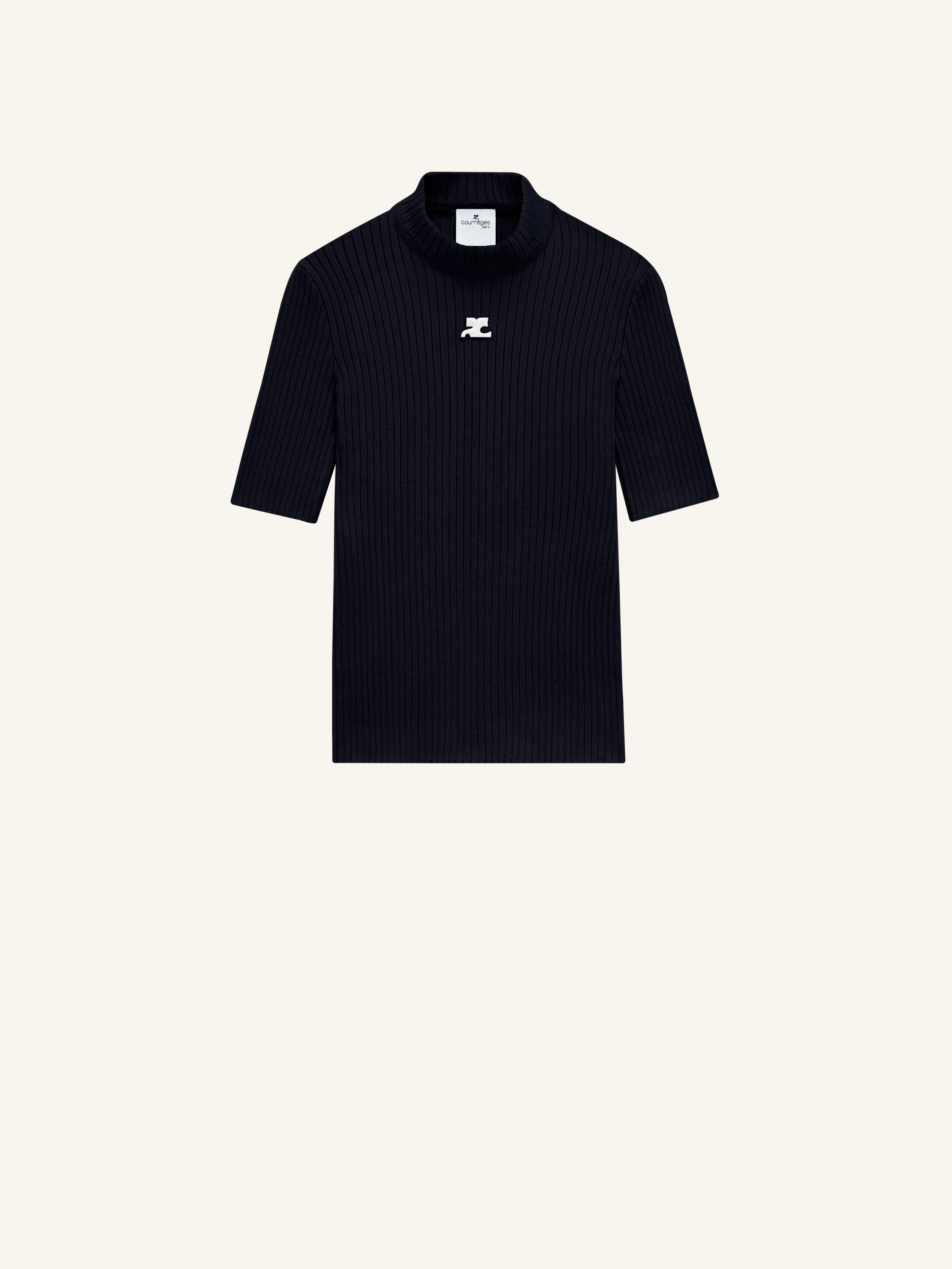 Iconic rib-knit high neck sweater with short sleeves and white AC logo on the front. DETAILS Composition: 70% viscose 30% polyester Country of Manufacture: BG SKU: PERMPU026FI00017075 Color: Navy