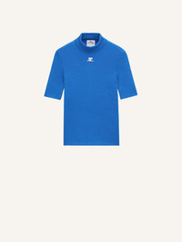 Iconic rib-knit high neck sweater with short sleeves and white AC logo on the front. DETAILS Composition: 70% viscose 30% polyester Country of Manufacture: BG SKU: PERMPU026FI00017050 Color: Blue