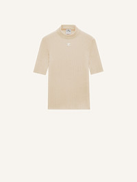 Iconic rib-knit high neck sweater with short sleeves and white AC logo on the front. DETAILS Composition: 70% viscose, 30% polyester Country of Manufacture: BG SKU: PERMPU026FI00011007 Color: Sand