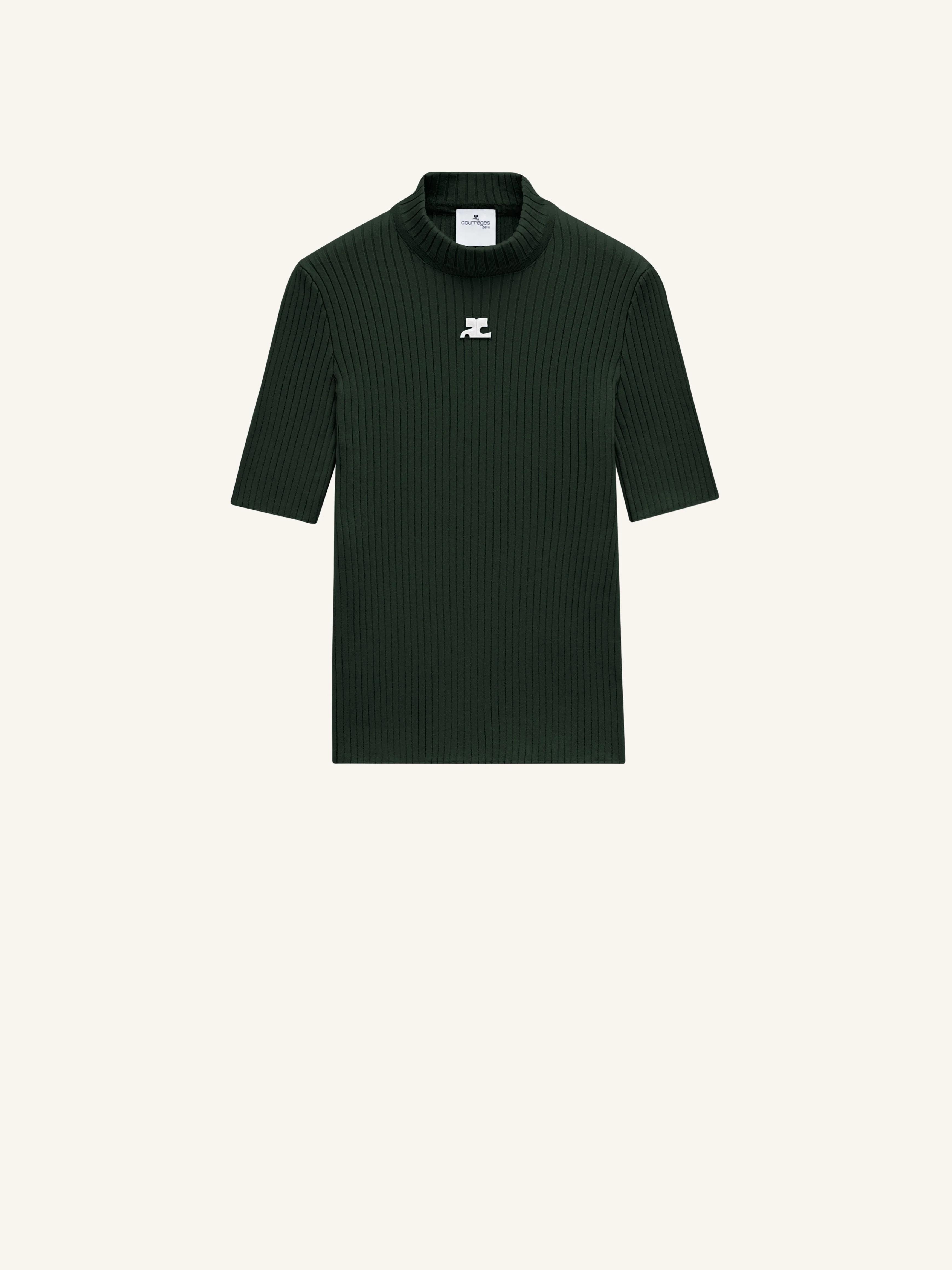 Iconic rib-knit high neck sweater with short sleeves and white AC logo on the front. DETAILS Composition: 70% viscose, 30% polyester Country of Manufacture: BG SKU: PERMPU026FI00018081 Color: Dark green