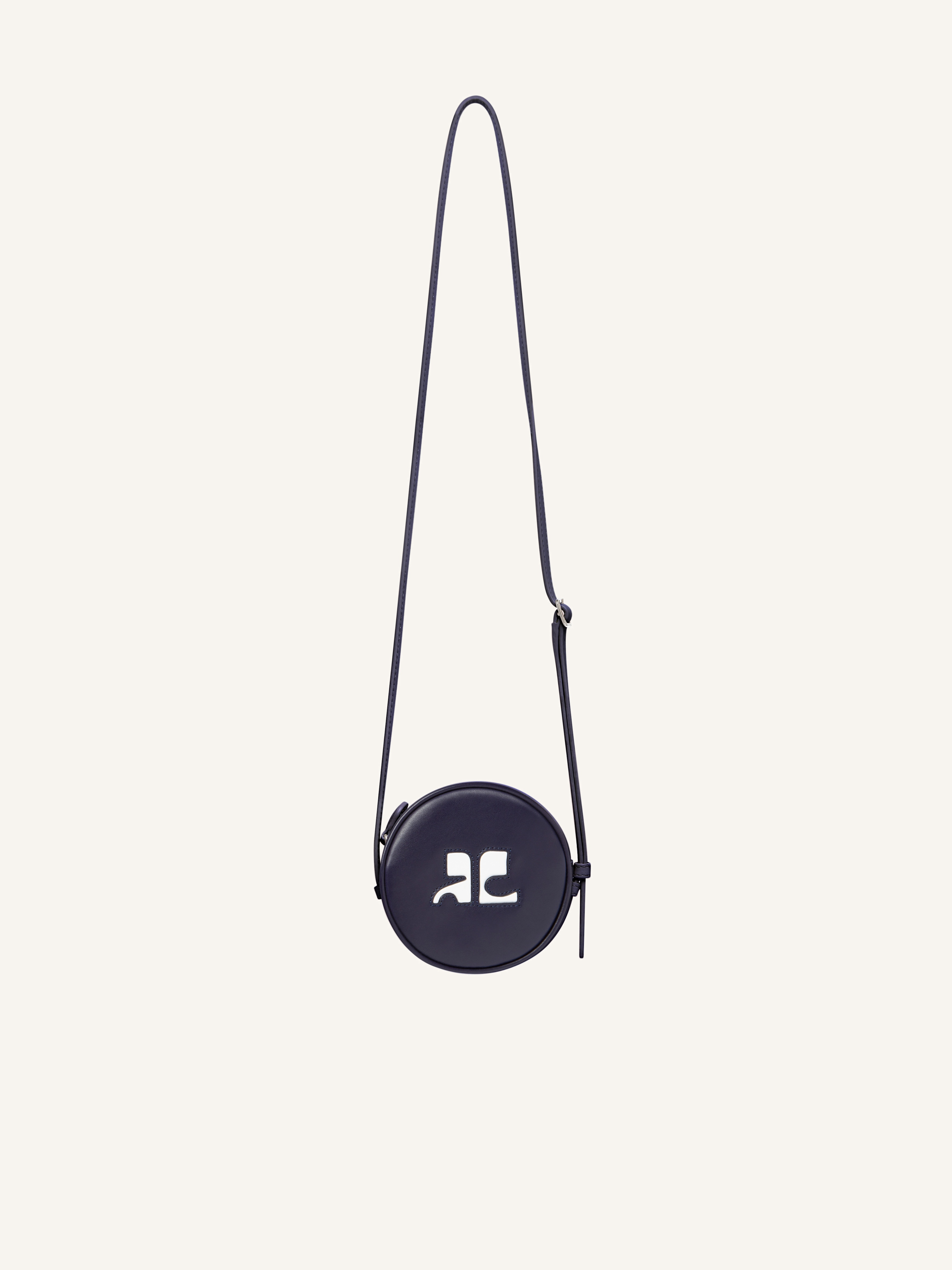 Made in a smooth leather and incrusted with our signature AC logo in the front, Courrèges presents for this Reedition collection a new version of its round bag with an adjustable strap. Diameter: 11 cm DETAILS Composition : 100% VACHETTE 100% COTON Color : Navy Item code : PERGSA050CR00107075