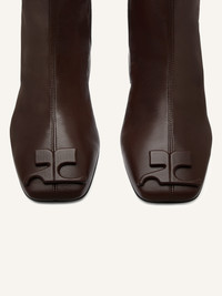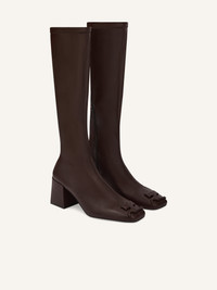 Iconic boots in Nappa leather-look synthetic material. Knee-high, heel and square toe with covered AC logo on toe of foot. Inside zip closure. Stem: 41 cm Heel: 7 cm DETAILS Composition: 55% polyurethane, 45% polyester Country of Manufacture: IT SKU: 324SBT036PL01281146 Color: Bark