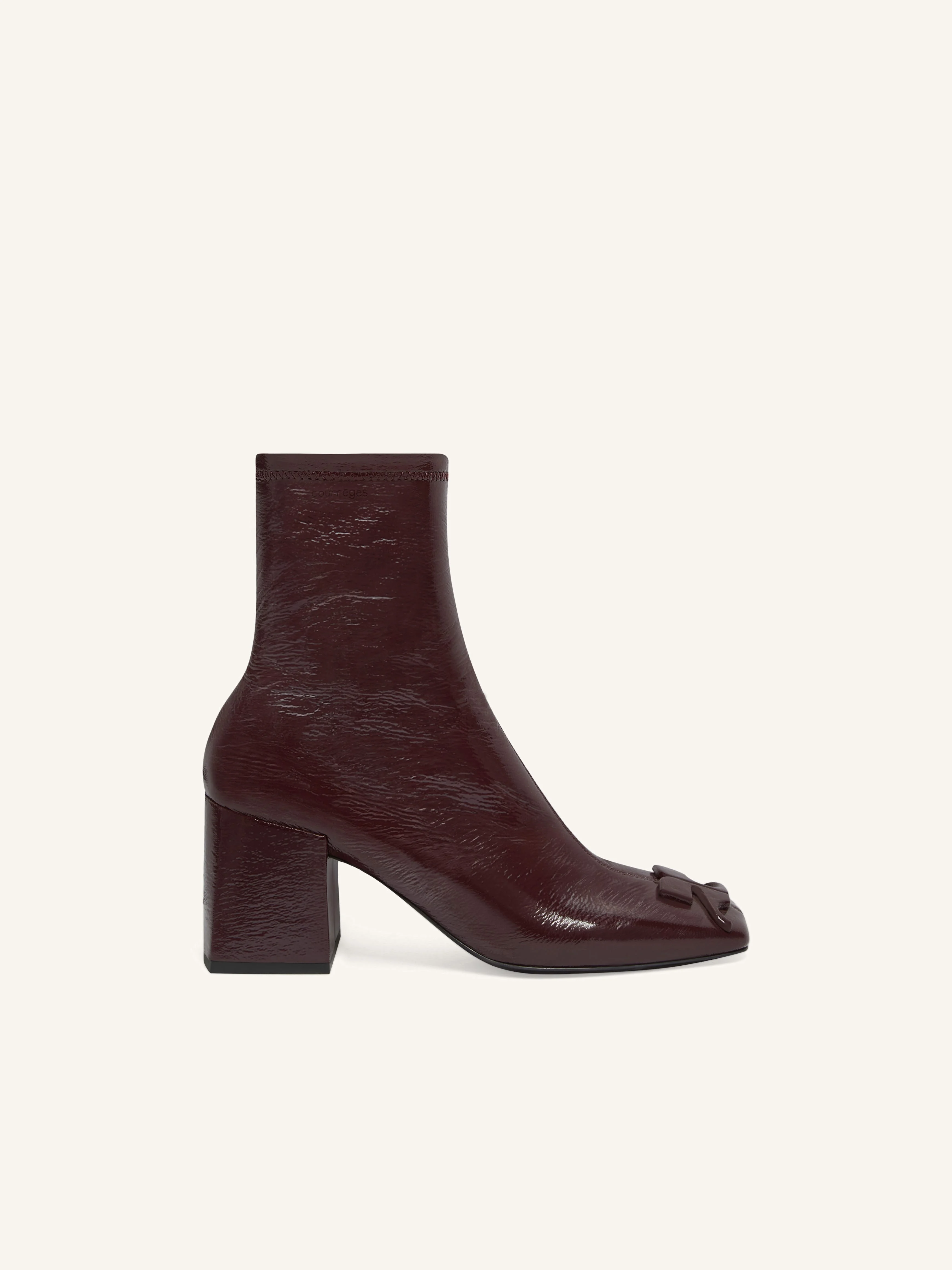 Ankle height iconic vinyl ankle boots. Square heel and toe covered with the AC logo. Inside zip closure. Stem: 16 cm Heel: 7 cm DETAILS Composition: 88% cotton, 10% polyurethane, 2% elastane Country of Manufacture: IT SKU: PERSAB021VY00154010 Color: Burgundy