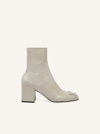 Ankle height iconic vinyl ankle boots. Square heel and toe covered with the AC logo. Inside zip closure. Stem: 16 cm Heel: 7 cm DETAILS Composition: 88% cotton, 10% polyurethane, 2% elastane Country of Manufacture: IT SKU: PERSAB021VY00159100 Color: Mastic Grey