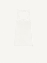 Sleeveless vinyl dress with straps. DETAILS Composition : 88% COTON 10% POLYURETHANE 2% ELASTHANE 100% CUPRO Color : Heritage white Item code : PERCRO036VY00140001