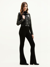Inspired by the house's emblematic 1971 style, this iconic vinyl jacket features a white AC logo inlaid on the chest. With two side pockets and a press buttons closure in the middle front and on the cuffs, as well as a high collar. This model is lined. The cut of the vinyl jacket from the Reeditions collection is close to that of the iconic model from 1971. It is a tight fit and was designed to be worn open. For more ease, we recommend that you choose the next size up from your usual size. DETAILS Main fabric: 88% Cotton 10% Polyurethane 2% Elasthane Secondary fabric: 55% Polyamide /Nylon 25% Polyurethane 20% Elasthane Lining: 100% Cupro Made in: Slovakia Color: Black Article code: PERCBL005VY00149999