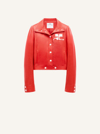 Inspired by the house's emblematic 1971 style, this iconic vinyl jacket features a white AC logo inlaid on the chest. With two side pockets and a press buttons closure in the middle front and on the cuffs, as well as a high collar. This model is lined. The cut of the vinyl jacket from the Reeditions collection is close to that of the iconic model from 1971. It is a tight fit and was designed to be worn open. For more ease, we recommend that you choose the next size up from your usual size. DETAILS Composition : 88% COTON 10% POLYURETHANE 2% ELASTHANE 55% POLYAMIDE/NYLON 25% POLYURETHANE 20% ELASTHANE 100% CUPRO Color : Red Heritage Item code : PERCBL005VY00143020