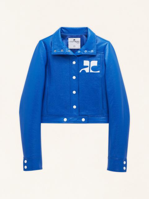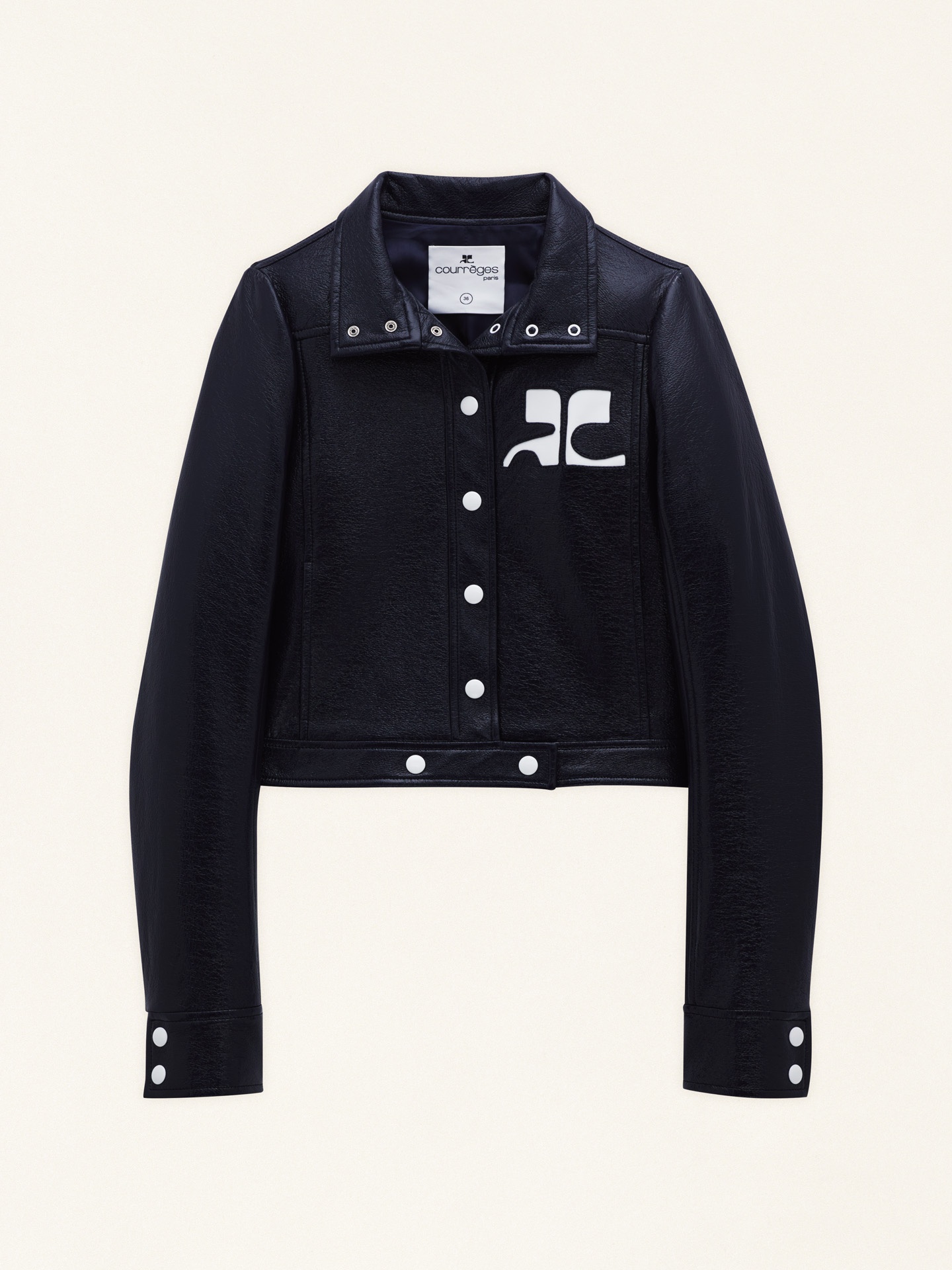 Inspired by the house's emblematic 1971 style, this iconic vinyl jacket features a white AC logo inlaid on the chest. With two side pockets and a press buttons closure in the middle front and on the cuffs, as well as a high collar. This model is lined. The cut of the vinyl jacket from the Reeditions collection is close to that of the iconic model from 1971. It is a tight fit and was designed to be worn open. For more ease, we recommend that you choose the next size up from your usual size. DETAILS Composition: PERCBL005VY0003 Country of manufacture: Portugal Colour: Bleu Marine Item code: PERCBL005VY00037075