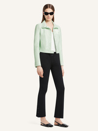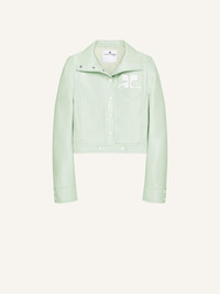 Iconic vinyl jacket with stand-up collar, long sleeves and lined interior. Two side pockets and inlaid white AC logo on chest. The model is 1.79m and wears a size 36. DETAILS Composition: 88% cotton, 10% polyurethane, 2% elastane Country of Manufacture: SK SKU: 223CBL005VY00147038 Color: Light mint