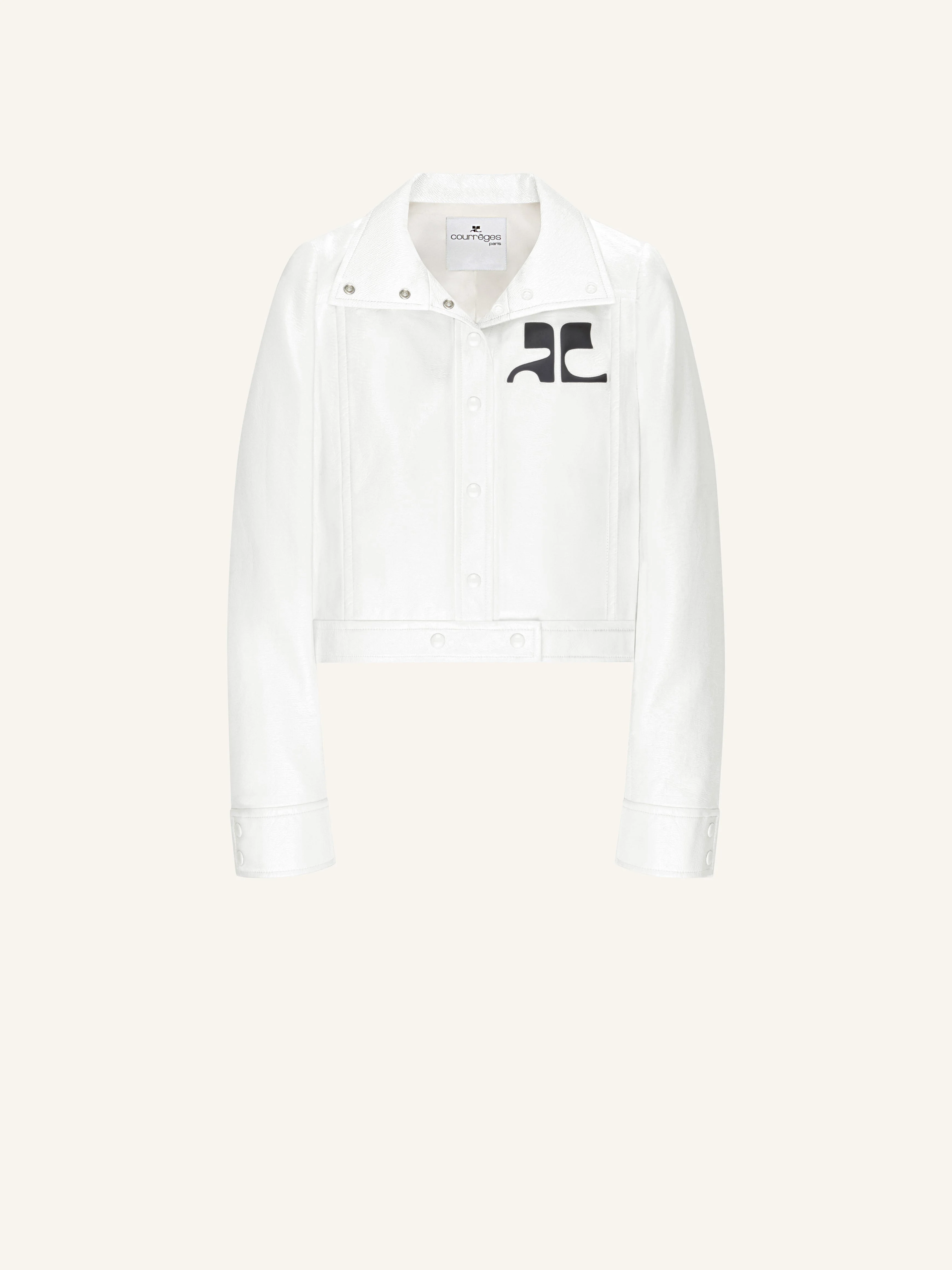 Iconic vinyl jacket with stand-up collar, long sleeves and lined interior. Two side pockets and inlaid contrast AC logo on chest. The model is 1.79m and wears a size 36. DETAILS Composition: 88% cotton, 10% polyurethane, 2% elastane Country of Manufacture: PT SKU: 625CBL005VY00140001 Color: Heritage White