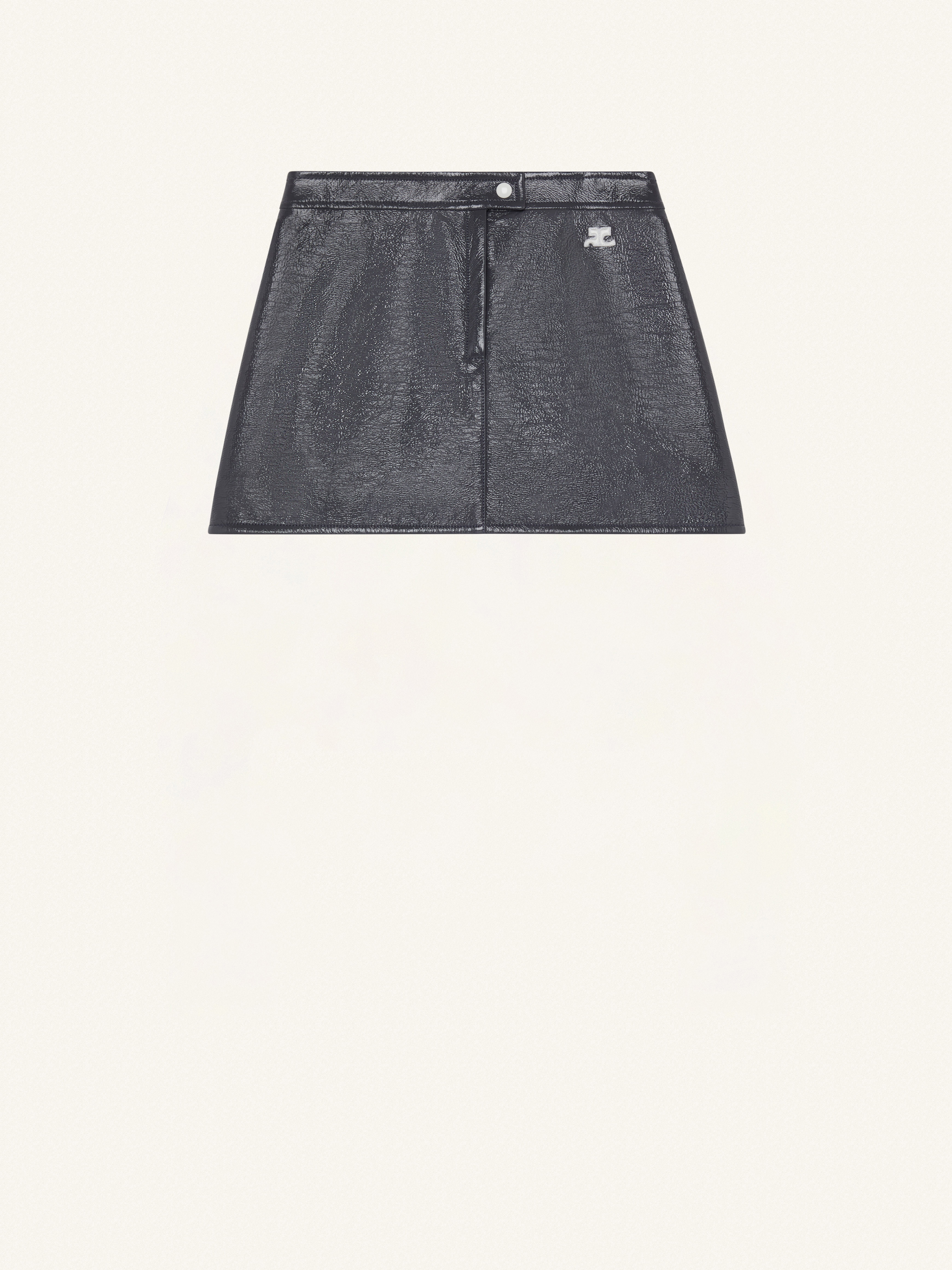 Vinyl trapeze mini skirt with tortoise print and one snap button at the belt with an embroidered AC logo. DETAILS Composition :Principal fabric:88% Cotton 10% Polyurethane 2% Elastane Doublure:100% Cupro Made in :Serbia Color : Steel Grey Item code : 223CJU001VY0014
