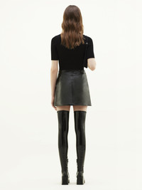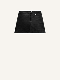 Vinyl miniskirt with white embroidered AC logo on the front. Closure fly style Courrèges with zip and white lacquered pressure. Darts in the back. Lined model. DETAILS Composition : 88% COTON 10% POLYURETHANE 2% ELASTHANE 100% CUPRO Color : Black Item code : PERCJU001VY00149999