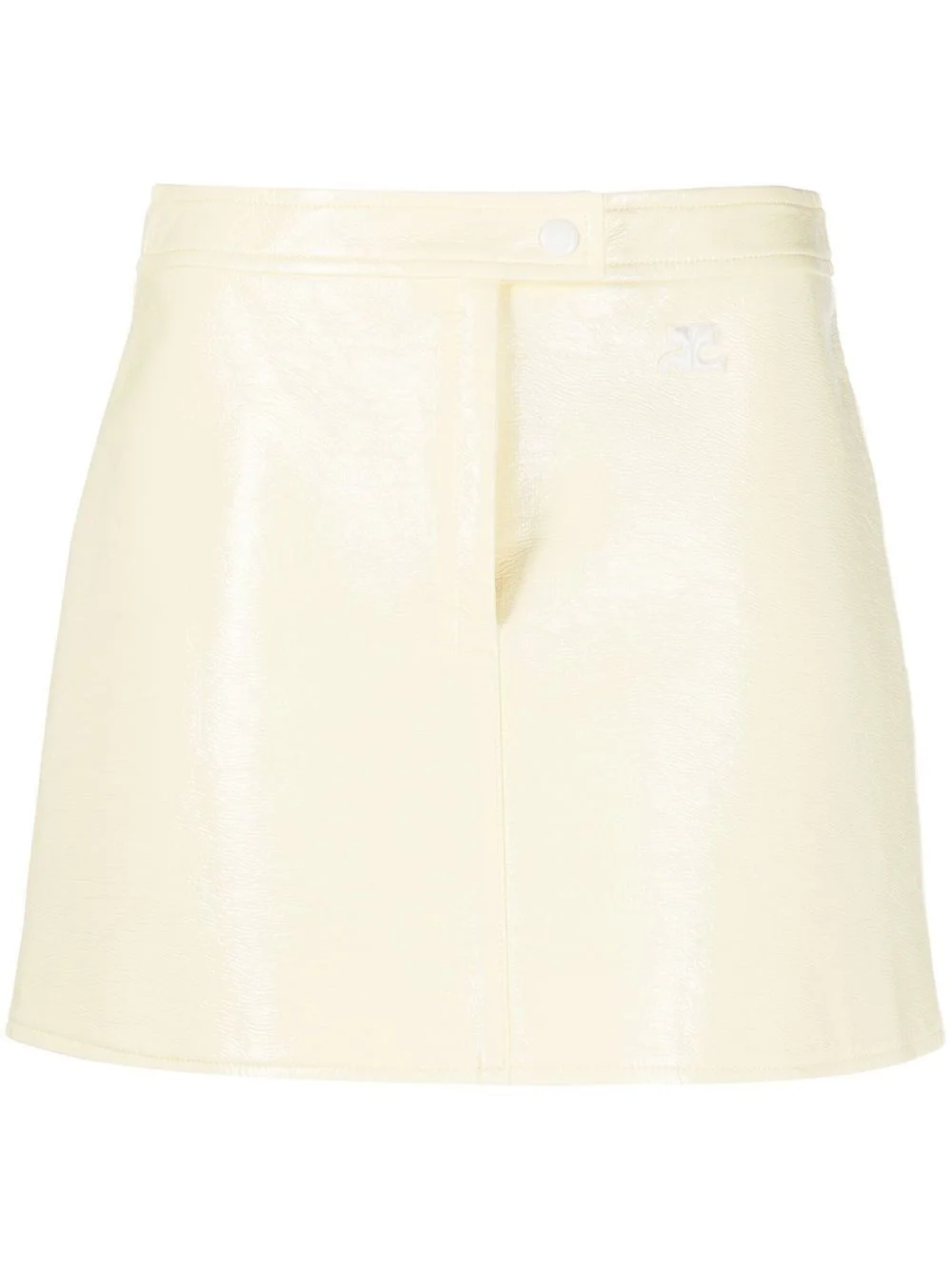 Reedition vinyl mini skirt This skirt from Courreges showcases the brand's penchant for shiny fabrics. It's presented in an A-line silhouette, complemented by a signature sheen. Made in Italy Composition Outer: Cotton 88%, Polyurethane 10%, Spandex/Elastane 2% Lining: Cupro 100% SIZE & FIT Model measurements Height 5 ft 10 in(1.77 m) Bust/Chest 32.28 in(82 cm) Hips 35.03 in(89 cm) Waist 25.19 in(64 cm) FittingInformation This piece fits true to size. We recommend you get your regular size Designed to be fitted at the waist and hips, loose over the leg Made with a mid-weight fabric