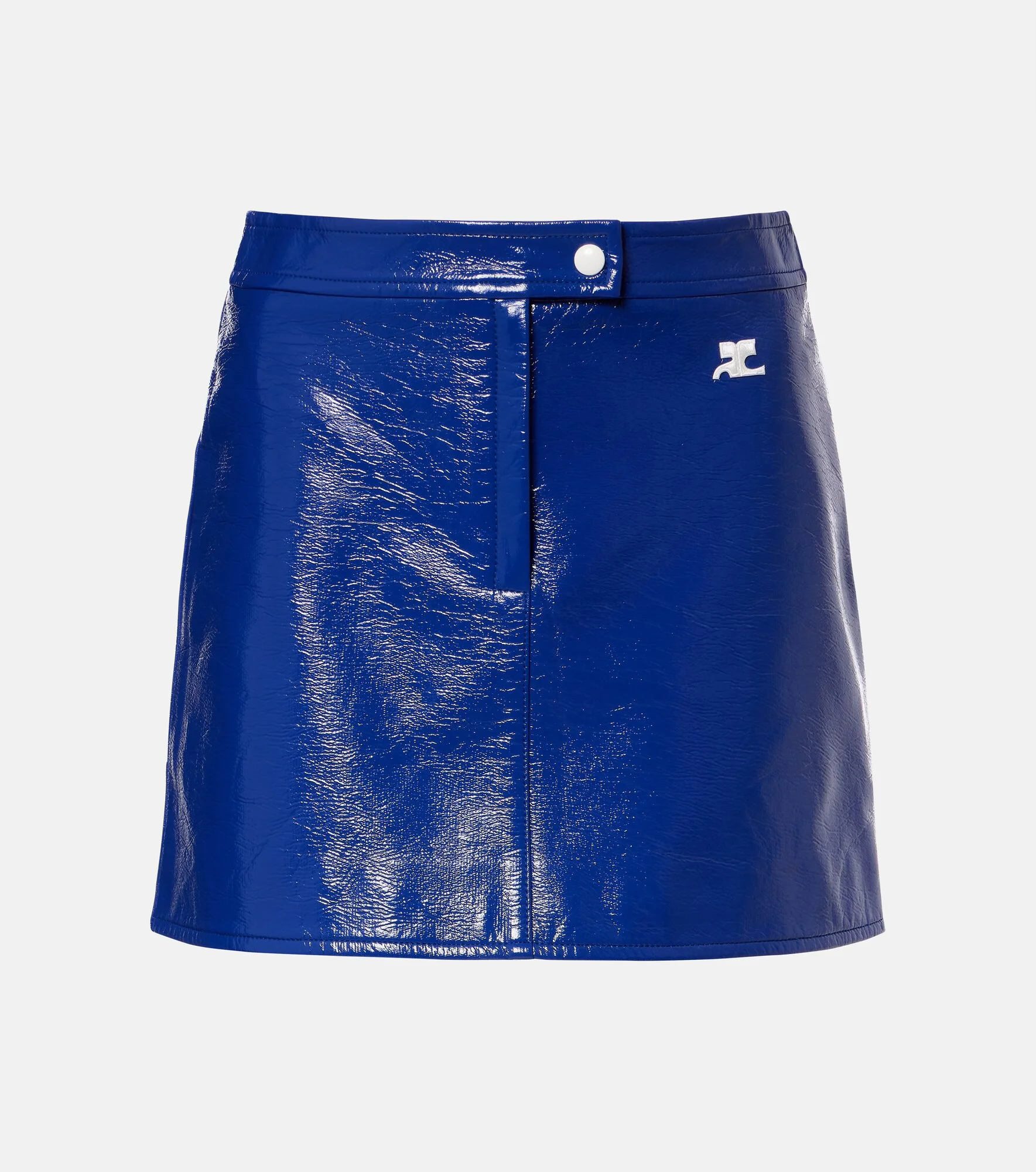 The futurist French fashion house Courreges is rocketing back into orbit with hyper-modern designs rooted in space-age influence. The Reedition miniskirt is crafted from glossy vinyl and is complete with the brand’s iconic logo. Product Details - Material: 88% cotton, 10% polyurethane, 2% elastane - Care instructions: specialist clean - Made in Serbia - Color: blue - Designer color name: Mineral Blue - Lining: 100% cupro - Closure: zipper, snap-button fastenings - Item number: P01153226 Size & Fit - True to size - Non-stretchy fabric - High-waisted - The model seen in the picture is 178cm-5'10" and wearing a size FR 36