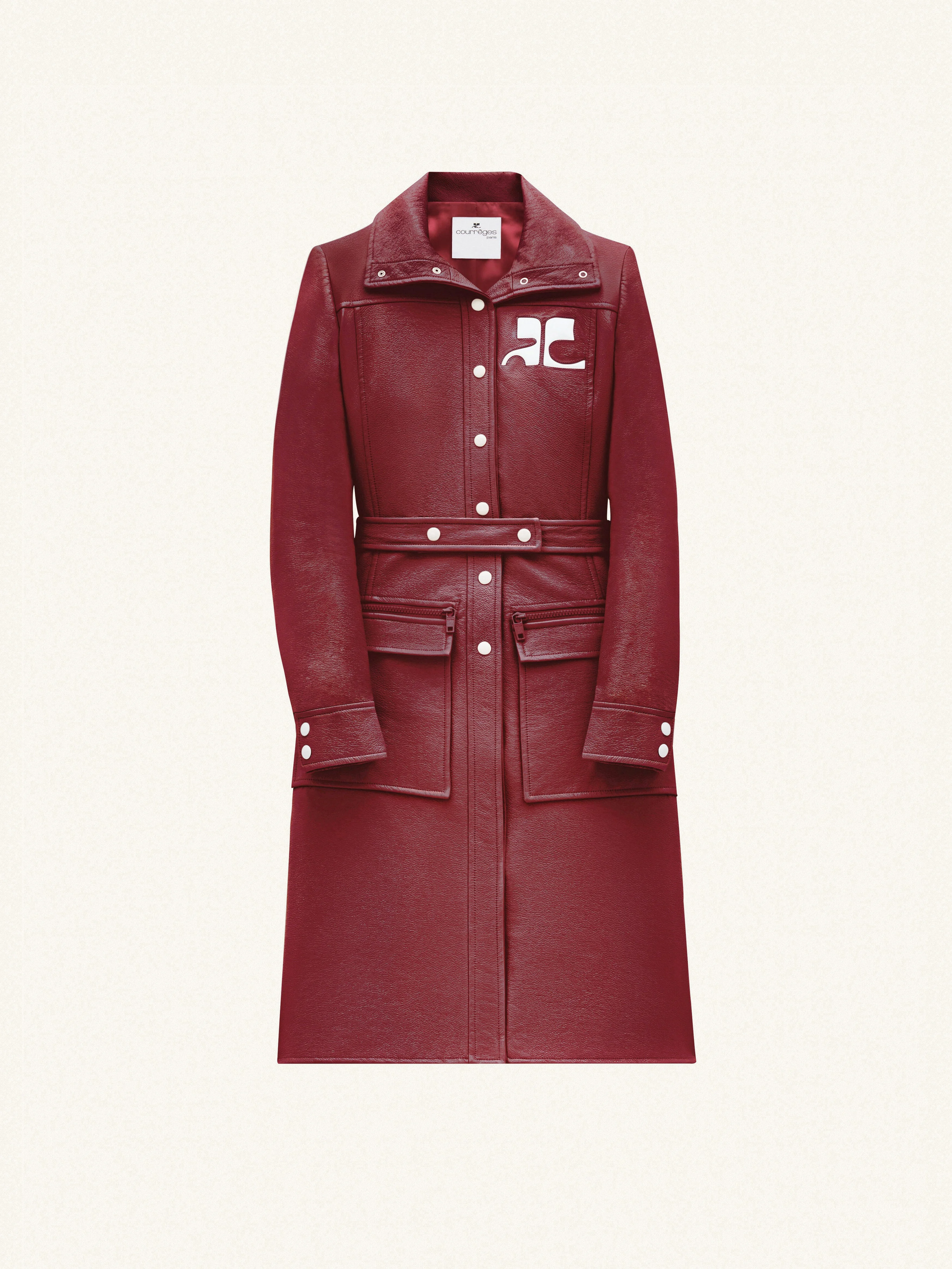 Inspired by the house's emblematic 1972 style, this iconic vinyl trench features a white AC logo inlaid on the chest. The belt is detachable and has a zipped pocket as well as a double entry patch pocket and a high collar. Closure by visible white lacquered press buttons on the middle front as well as on the cuffs and a back slit. This model is lined. DETAILS Composition : 88% COTON 10% POLYURETHANE 2% ELASTHANE 55% POLYAMIDE/NYLON 25% POLYURETHANE 20% ELASTHANE 100% CUPRO Color : Red Item code : PERCMA078VY00144034
