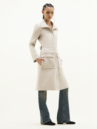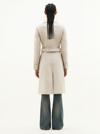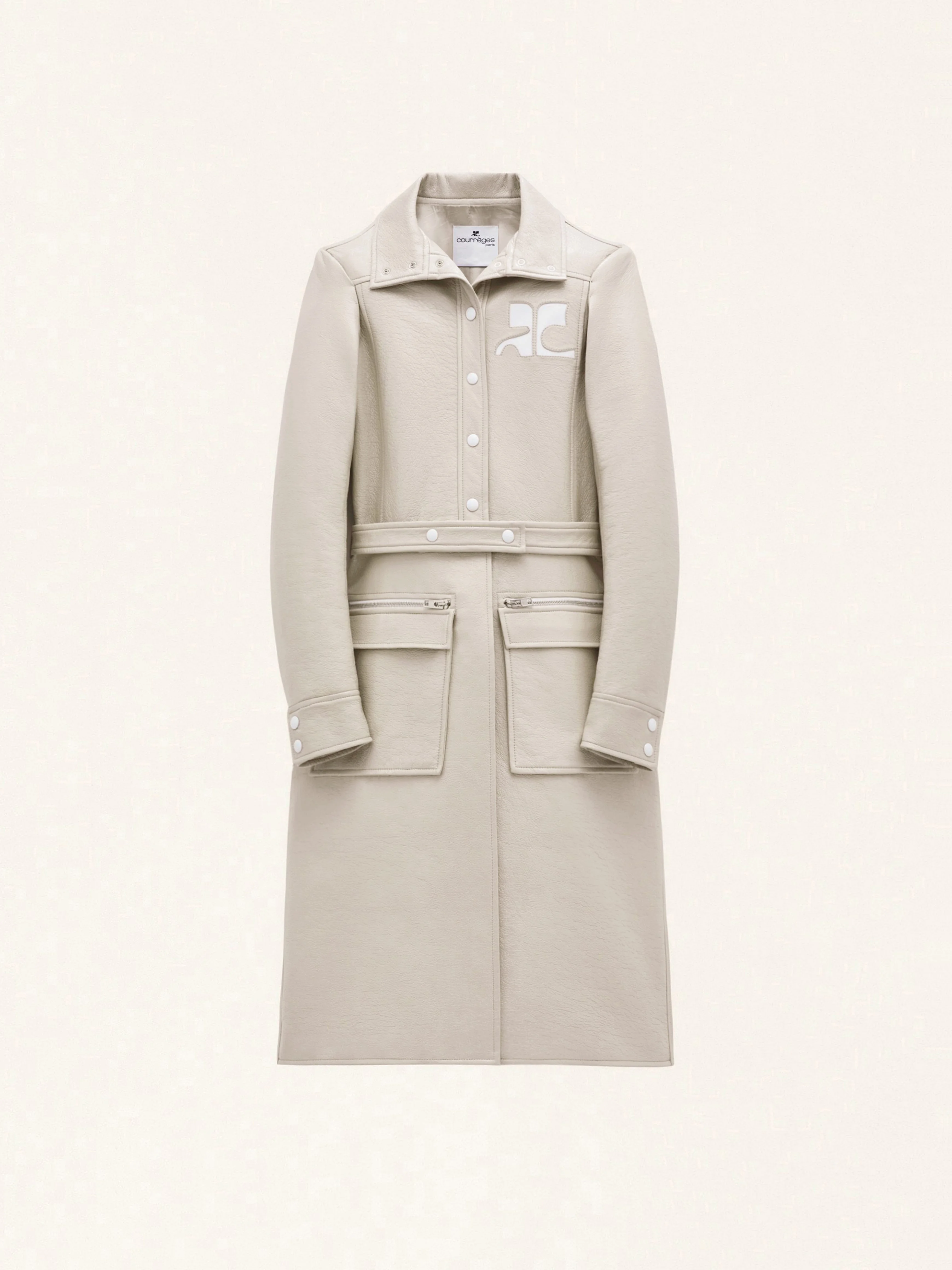 Inspired by the house's emblematic 1972 style, this iconic vinyl trench features a white AC logo inlaid on the chest. The belt is detachable and has a zipped pocket as well as a double entry patch pocket and a high collar. Closure by visible white lacquered press buttons on the middle front as well as on the cuffs and a back slit. This model is lined. DETAILS Composition : 88% COTON 10% POLYURETHANE 2% ELASTHANE 55% POLYAMIDE/NYLON 25% POLYURETHANE 20% ELASTHANE 100% CUPRO Color : Mastic Item code : PERCMA078VY00149100