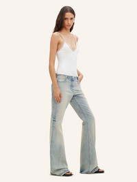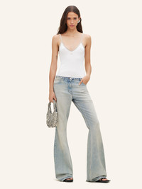 Faded denim bootcut pants with embroidered AC logo on the back pocket. Five pockets. The model is 1m75 tall and wears a size 36. DETAILS Composition: 100% cotton Country of Manufacture: TN SKU: 224DPA221DE00167011 Color: Light Blue