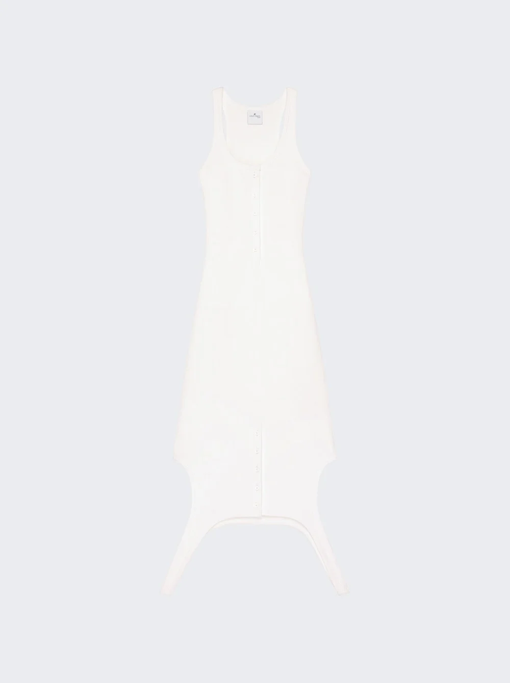 Details - Regular fit - Sleeveless - Scoop neck - Ribbed knit construction - Front button closure - Fixed shoulder straps - Asymmetrical hem - Care according to label - Material: 70% Viscose, 30% Polyester - Model is 5'9"/175cm and is wearing a size S Brand Style: 424MRO514FI0001 Designer/Brand: COURReGES