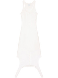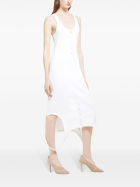 Reversed dress Highlights - White - Knitted construction - Scoop neck - Sleeveless - Front button placket - Racerback - Reversed hem Imported Composition Viscose 70%, Polyester 30%