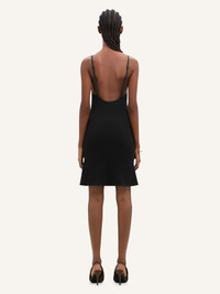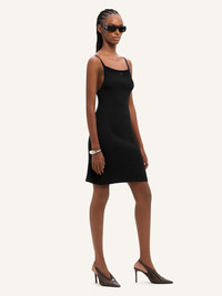 Rib-knit mini dress with square neckline and central AC logo. Adjustable straps. The model is 1.76m tall and wears a size S. DETAILS Composition: 70% viscose, 30% polyester Country of Manufacture: PT SKU: 324MRO441FI00019999 Color: Black