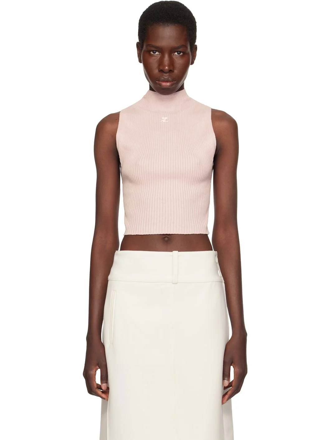 Rib-knit cotton- and merino wool-blend tank top. · Mock neck · Logo embroidered at chest · Cropped hem Supplier color: Salt pink 80% cotton, 20% merino wool. Made in Italy 251783F111036